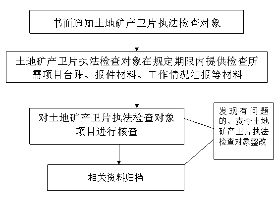 第七条:国土资源主管部门应当履行下列监督检查职责:(一)对国土资源法律、法规的遵守和执行情况进行监督检查;(二)受理对国土资源违法行为的检举、控告;(三)查处国土资源违法案件;(四)法律、法规规定的其他监督检查职责。