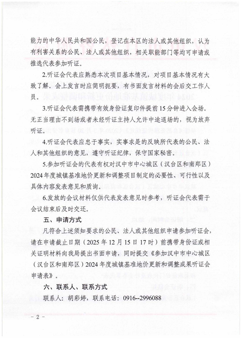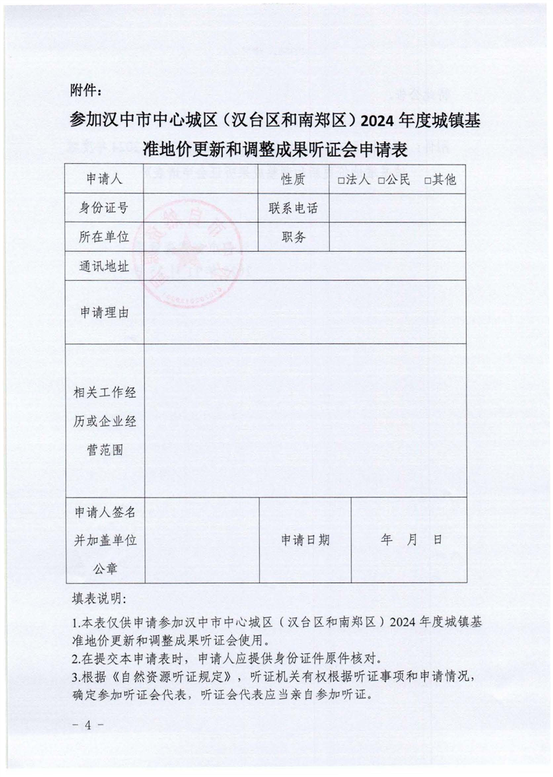附件:《参加汉中市中心城区(汉台区和南郑区)2024年度城镇基准地价更新和调整成果听证