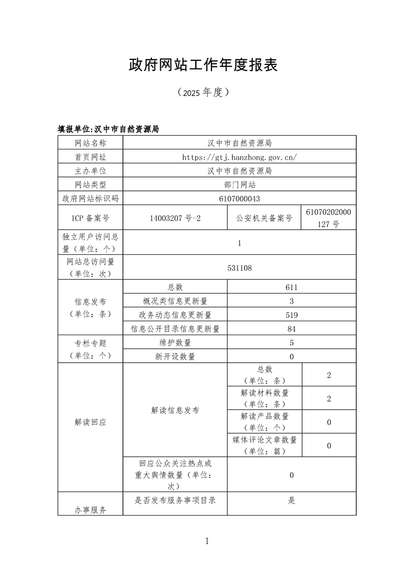 汉中市自然资源局2025年度政府网站工作年度报表