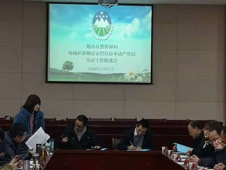 12月6日勉县自然资源局召集各镇办分管领导和移民专干、各基层国土资源所、移民办、不动产登记中心、资源用途管制股、资源调查登记股、国土空间规划股,各技术单位,召开全县易地扶贫搬迁安置住房不动产登记工作推进会,赵治生局长对本次易地扶贫搬迁安置点发证工作提出要求:一是认识到位。办理安置户产权证书是从本质上确保搬迁群众的合法权益,“人定心、房定权”,房子合法产权取得是解决搬迁户的后顾之忧,各单位从思想上要高度重视;二是各方面责任必须夯实到位。对涉及该项工作的六方面做出安排,要求各单位要分工协作、统筹推进,精准到户,先易后难,保证完成年度任务;三是关键环节到位。准确匹配和把握好时间进度的同时及时解决登记发证过程中遇到的各类问题,对涉及易地扶贫搬迁安置登记发证不收取百姓任何费用做出强调。